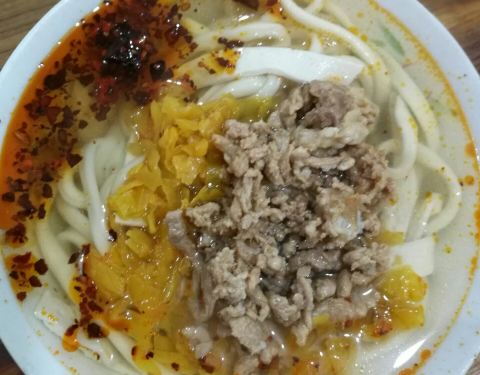 佛堂古镇的特色美食千张面,难得来一趟,当然不能错过,看攻略貌似古镇周边就这家最有名了,跟着导航进了巷子,总算不是太费劲就找到了,环境真的就是小镇水平,虽然是下午光景,依旧顾客不断,千张面可以点小份,面条有点劲道,混着百叶丝和肉丝,口感还是蛮特别的,固定搭配是要加辣子的,整体口味满有特色的。