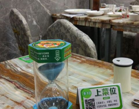 用漏斗沙粒看上菜时间,速度快,口味大众 - 服务超级好,我女儿行动不方便,四个服务员抬着上楼的,这样的服务,相信将来会越来越好的,祝老板生...