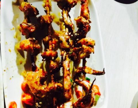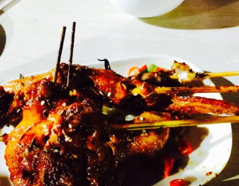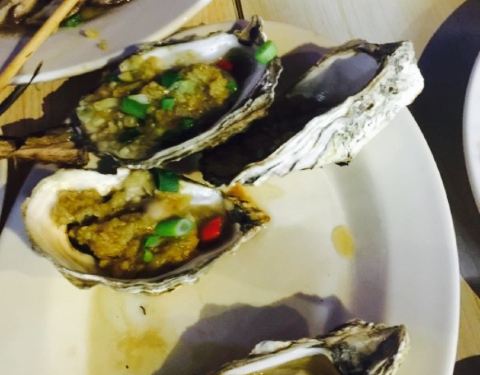 在惠东巽寮湾,就在海边,在一排众多餐厅中,是专做烧烤的店,属于东北烧烤,也有炒菜。香菇西兰花,西兰花和香菇切得比较小,喜欢这样的,方便吃,又鲜美。小炒肉,改良了,用的菜椒,一点也不辣,基本算是菜椒豆豉炒肉片,本人不开心。凉拌黑木耳,还不错,酸麻辣。烤豆干,不少的蒜蓉,很入味,烤的很香。推荐。羊肉串,据说是正宗羊肉,比较硬,一般。生蚝,还可以,就是比较小。烤鸡中翅,还可以,一根有两个鸡翅,小朋友挺开心。烤茄子,烤洋芋,一般。蛋炒饭,水饺,挺好吃的。整体来说,味道还可以,喜欢吃烧烤的,可以尝试。