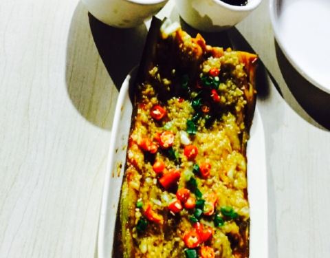 最美味的是烤茄子,蒜蓉腌的很够味,凉瓜煎蛋也很鲜美,煎得软硬度适中,惟一觉得遗憾的是可以烤的种...
