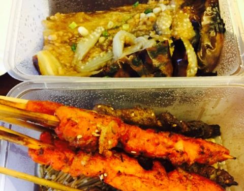羊肉串,据说是正宗羊肉,比较硬,一般。蛋炒饭,水饺,挺好吃的。凉拌黑木耳,还不错,酸麻辣。推荐