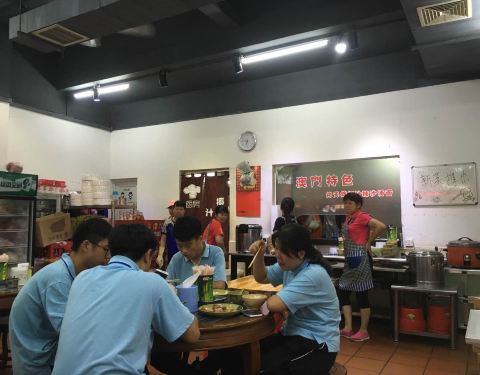离上班的地方很近哦~人挺多的,午餐的时候要拼桌,有支付宝9折买单很划算哦~点的虾酱等好久,肉饼饭就很快。明天还会再来~推荐推荐