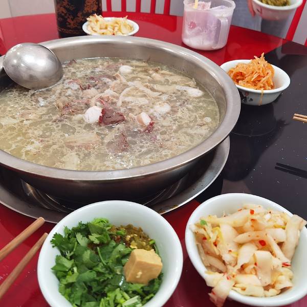 这家店是名山本地朋友推荐的,和顺羊肉在名山开了很多年,也是老店,背后头挂了满满的证书,味道针不戳[调皮] 羊汤是大骨熬制的,喝起来非常鲜。羊肉是煮熟了的,下锅烫一烫就能直接吃了,不蘸调料都可以吃到肉香😻 团坐在大桌旁,点上一锅羊肉汤,丝丝火苗在汤盆地下燃烧,寥寥白烟在盆面上翻涌,淡淡的羊肉汤香味从鼻尖飘过,看到都暖和的不得了。