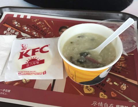 今天又来吃肯德基的早餐了,皮蛋瘦肉粥加太阳蛋,OK了!!