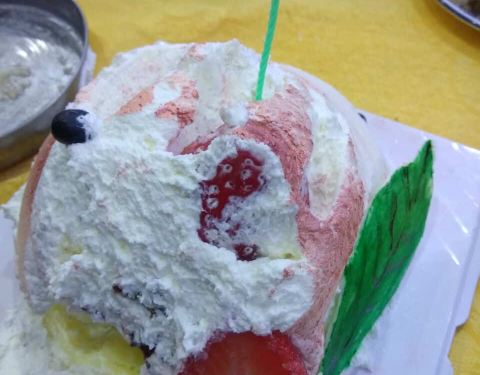 老人家生日,亲自做了个蛋糕给老人庆生,结果服务员把蛋糕摔成这样,还没有告诉我们。等我们打开后才知道变成这样,差评!!!