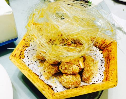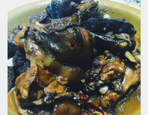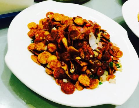 中午家里聚餐,选了个性价比不错的酒家,离家里也不远,人多所以定了个大的包间,可以坐下 。十六七个人,带独立洗手间,蛮好的。家乡菜总是充满地道的韵味。??辣糊汤是典型的淮南做法,加了切碎的油条,非常好喝,仿佛喝到了小时候上学那会,早餐必喝的辣糊汤的味道??。??蒸榆钱也是土菜,每年春天大自然回馈给我们丰厚的食材,这道菜也是深受欢迎,店主自己调的蒜汁淋在上边,滋味十足。??红烧肉肥而不腻,微甜带咸,份量也很实在。??炒南瓜丝也是好吃入味呀,清爽下饭。