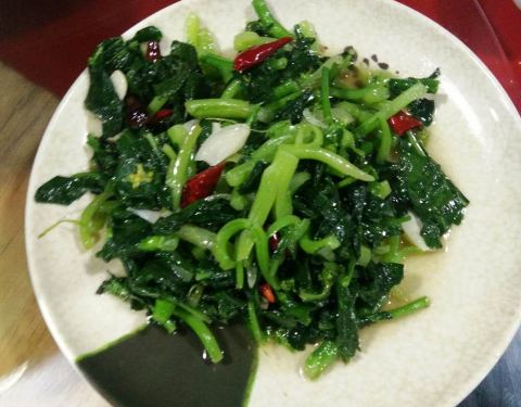 年初一晚上到了蒙自市,找半天也没在街上看见有餐馆营业,正伤脑筋之时发现了这家餐馆!餐馆里生意非要好,排队的客人已不少,因为我们一大家子人多,餐馆才优先安排了我们入座!彝族菜还是头一次品尝,不知该点些什么,所以让热情的服务员帮我们推荐了几个特色菜。蒸糕热气腾腾、香糯可口,非常赞!黄焖土鸡的鸡肉肉质紧实鲜美、入味也深,一尝就知道不是拿冷冻鸡肉来唬弄顾客的!野菜煎蛋既无怪味又特别香!饵块回锅肉鲜香不油腻,炒出了水平!其他素菜虽无特色,但也中规中矩!特别是价钱十分实惠,七个人总共消费不到三百元,在过年其间实属非常不易了!