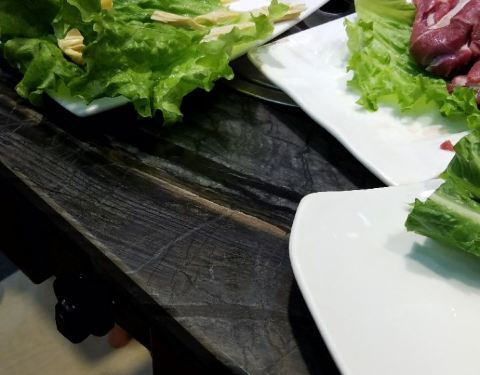 据说保亭最好吃的涮肉,去过的家里人都赞不绝口~晚饭时间人还是很多的,然而大热天也不开空调,给孩子们热的直往外跑,大人们也是满头大汗~ 牛肉一般,我们点的上脑,是老牛吧,大人都咬不动~ 羊肉好吃,我们点的鲜羊肉和切的羊肉片,都可以的,然而这种鲜羊肉我还是第一次吃,和我在别地方吃的不一样,这个叫羊五花肉应该更准确~不过肉很嫩,口感很好,也不会感觉到膻~孩子吃了不少~ 调料很全,不过麻酱品质一般,需要改进~ 送的黑米粥好喝~