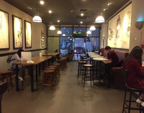 第一天去的时候全场满座,结果跑了去附近的 COSTA COFFEE 喝咖啡。第二天差不多六点过去,人不多,环境十分清静,但收拾东西的速度仍然有待改善。