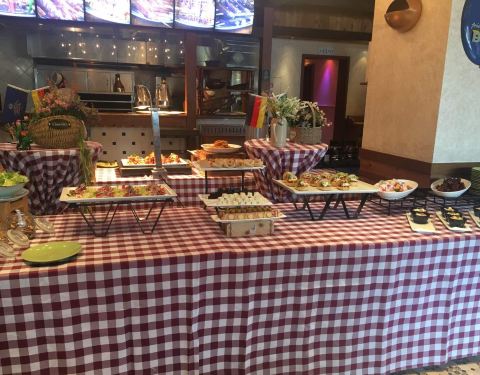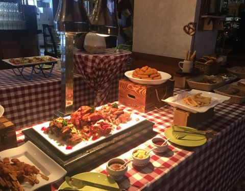 有三个个吃,还有德餐正宗的脆皮烤猪肘,很多美食,只有中午才行!早早来预定的!