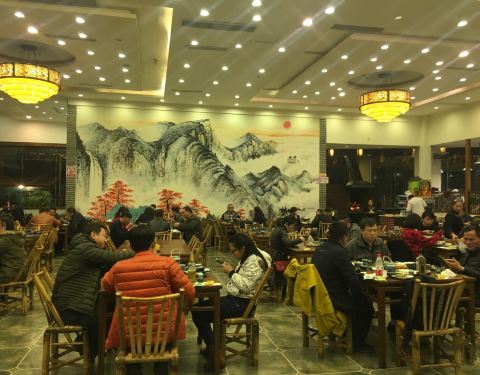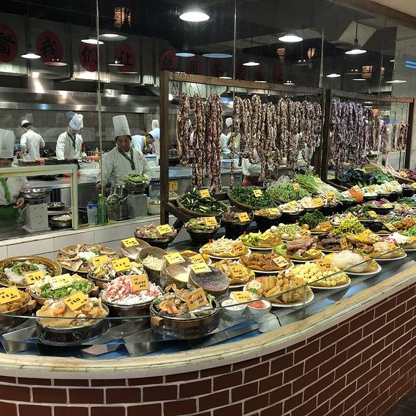 现在好像特别流行这种农家乐的吃饭方式,装修刻意的土土的。大堂像是在农村办喜事的感觉,热闹非凡,其乐融融。菜都是看得见的自选,以农家菜为主,很家常也很好吃。还有很多自酿的酒。喝酒用碗,很有一种大碗喝...现在好像特别流行这种农家乐的吃饭方式,装修刻意的土土的。大堂像是在农村办喜事的感觉,热闹非凡,其乐融融。菜都是看得见的自选,以农家菜为主,很家常也很好吃。还有很多自酿的酒。喝酒用碗,很有一种大碗喝酒大块吃肉的感觉,粗放自在!