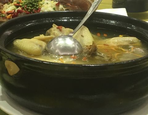 现在好像特别流行这种农家乐的吃饭方式,装修刻意的土土的。大堂像是在农村办喜事的感觉,热闹非凡,其乐融融。菜都是看得见的自选,以农家菜为主,很家常也很好吃。还有很多自酿的酒。喝酒用碗,很有一种大碗喝酒大块吃肉的感觉,粗放自在!