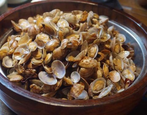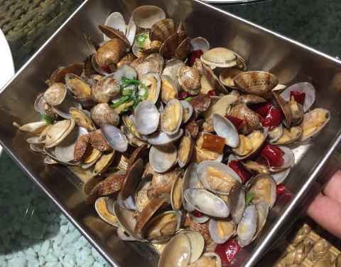 蓝港海鲜厨房,距离奥帆广场只有咫尺之遥。以海鲜为主的餐厅。室内区分包房和客厅。室外有露天位。 最喜欢他家的水饺。墨鱼水饺的饺子皮也是用墨鱼汁和面的。手剥虾仁水饺里面有两只鲜虾仁。馅料调的味道蛮鲜的。 大头菜炒螺片,口味咸鲜。螺片清脆,大头菜略咸。但北方人口味应该觉得还可以。 蛎虾是青岛海域才有的品种。只有野生的蛎虾,不能人工养殖。蛎虾个头不大,虾肉比较好剥,野生的口感比较鲜美。 烧烤类口感偏咸。配青啤还不错。 毛蛤蜊是青岛海域的。也就是上海说的毛蚶。颜色没有上海的那么红。喜欢毛蚶的可以试试。 辣炒蛤蜊。青岛人最喜欢吃蛤蜊喝啤酒。此处喝读(哈)蛤蜊价格便宜,一份炒出来份量蛮多的。麻辣口味,比较下饭。