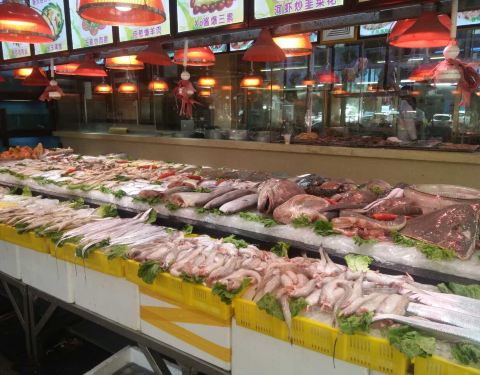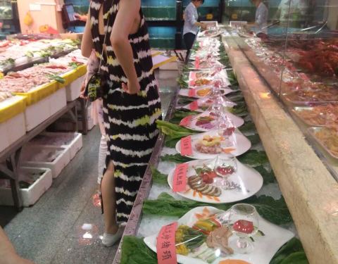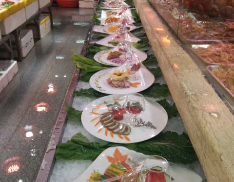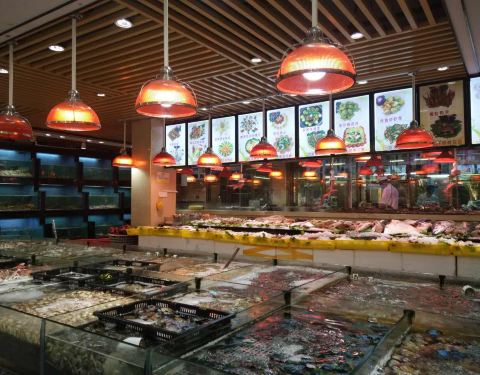 设有食材展示区,新鲜海产品质颇优