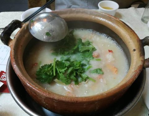 深圳的第一站美食地——香稻园 香稻园据说是深圳的一家连锁老品牌了,它家主打的就是砂锅粥、各种海鲜,不得不说,它家的砂锅粥是真的好吃,料可以自选,点了最为推荐的羔蟹鲜虾粥,半锅都是大块的蟹肉和鲜虾,半斤鲜虾和大羔蟹的分量是可以看到的,满满的海鲜鲜甜味,配上熬得浓稠绵滑的粥底,好吃到不行。 白灼虾菇,特别的新鲜,新鲜度真是没话说,虾菇肉质紧实,而且每只都还有膏。姜葱炒红蟹,姜葱蒜蓉的香味浸透蟹肉,越吃越想吃。炒通菜,也就是炒空心菜,这里通菜可以说是非常非常嫩了,而且不会油腻,很好吃。