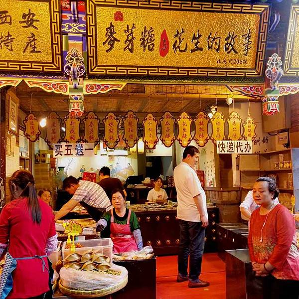 【麦芽糖•花生的故事】是回民街上一家非常有名的连锁店,可能一直关注的朋友会发现小杨写的点评里面常常会提到一个名字:连锁店!也是因为回民街的情况所决定的,因为回民街上有个风格就是只要有一家店开火了,那么必然就会出现十家百家的各种各样的连锁分店,其实到底是不是分店离我都不知道,只能说姑且怎么认为吧? 这家店是位于回民街正街也就是北院门店,生意应该是最好的,毕竟占据了地理优势,那么这家店的交通也是最方便的,乘坐地铁二号线到【钟楼站】下车,之后顺着指引牌走到回民街上,进入主街之后大概走50米左手边就能看到,还有一个很明显的标识,回民街上有一个榜眼府也就是高家大院,那么高家大院就在这家店的右侧,是不是非常好找到呢? 以前这家店还比较好玩,因为那个时候有工作人员会在门口表演扯那个花生糖,也好像是麦芽糖吧,反正这个糖可以拉很远很远很远都不会断,工作人员就一直在这里拉到最长的时候一下甩回来,然后又出去又回来,不断的重复,那个时候很多游客都会围上来拍照留恋,可惜不知道为啥现在把这个项目给取消了,大家也看不到这个拉糖的表演了。还有就是拿着锤子在那里砸花生糖,一锤子一锤子的下去很给力,完了之后用刀切成一块一块的装在盒子里打包卖,我过来的时候运气不好没有看到,希望你们能遇见哈~ 店里的糖口味有十几种,你喜欢的话就自己可以尝一下,看好不好吃好吃再买都可以,这家店的服务还是很不错的,至少你一路吃过去之后就算不买,他也不会说你什么。店内也提供邮寄服务,买好之后把单子一填,当天就可以发货出去,非常的便捷。价格的话也就是回民街上的均价,十元钱一盒,买五盒送一盒 期待下次过来可以看到拉糖的表演~