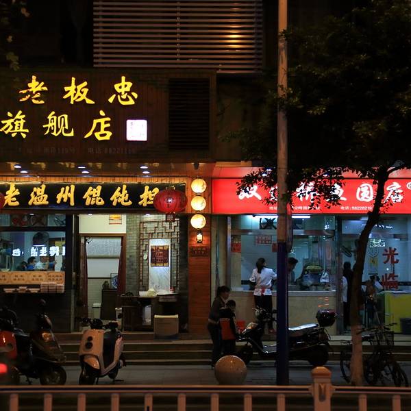 “馄饨担”是竹制的,一前一后两只橱柜,中间一根扁担,挑在肩上行走。一头是食柜,装着皮馅、包好的馄饨、佐料和碗盅;一头是锅灶木柴和汤水。这般简便,却成就了一个完整的灶间。过去,在夜间的街弄巷口,流动馄饨担“笃、笃、笃”的敲梆声,回荡在很多 温州 人的记忆里。店名:老 温州 馄饨担