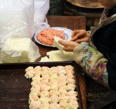 温州馄饨“皮薄、肉香、料足”,是温州人最爱的家乡美食之一。 “馄饨担”是竹制的,一前一后两只橱柜,中间一根扁担,挑在肩上行走。一头是食柜,装着皮馅、包好的馄饨、佐料和碗盅;一头是锅灶木柴和汤水。这般...温州馄饨“皮薄、肉香、料足”,是温州人最爱的家乡美食之一。 “馄饨担”是竹制的,一前一后两只橱柜,中间一根扁担,挑在肩上行走。一头是食柜,装着皮馅、包好的馄饨、佐料和碗盅;一头是锅灶木柴和汤水。这般简便,却成就了一个完整的灶间。过去,在夜间的街弄巷口,流动馄饨担“笃、笃、笃”的敲梆声,回荡在很多温州人的记忆里。