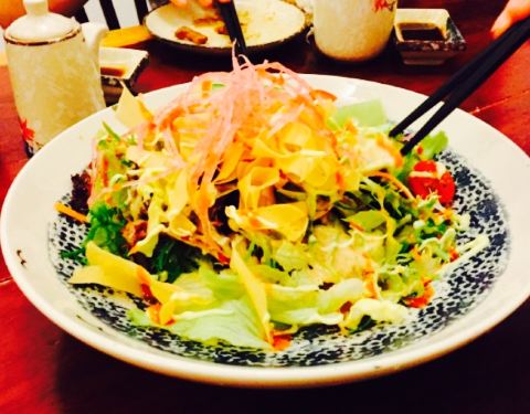 石锅拌饭好吃,肥牛汤里的肥牛也不少,另外点了份刺身拼盘,老板娘还送了我们一份炸物,来吃了这么多...