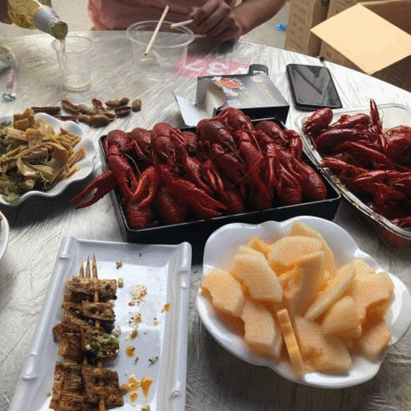 下班带回来吃的。真的累了一天我很想休息一下 爱吃小龙虾 带宿舍我们都挺爱吃他家的
