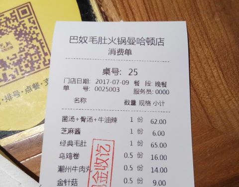 今天中午非常开心,领导请吃饭。那我们绝对不会放过这个大好的机会,必须选择郑州本地非常知名的毛肚火锅品牌巴奴。说来也奇怪,巴奴在郑州的生意这么好,但是只是在河南开全国其他地方似乎还没有见到。 如果弄味道的话,他们家的味道真的可以和海底捞相媲美。但是服务真的就不是巴奴的特色了,毛肚和菌汤才是,这句话一点都不假。 我们一共5个人,基本上没有怎么点肉,也就只有三个肉菜,总价格也都到了490块钱,虽然好吃,但是真的还是蛮贵的。 几个菜推荐给大家,一定要点的,一个就是他们家的毛肚,这个是必点,而且七上八下的吃法一点都不会错。另外一个就是宽粉了,这也是我吃火锅的最爱。在选调料的时候,真的不要放太多的芝麻酱,特别的咸,吃一些蒜蓉会好一些。