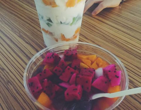 奶油杯水果好少奶油太多了吃到后面好腻,那个芋圆还是挺好吃的,夏天吃挺凉的