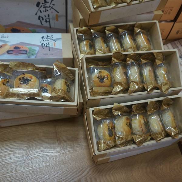 出去玩。总要准备一些伴手礼。送给家里的和亲人和朋友。看着门头挺不错的。去了以后才知道收百年老店。每种东西都可以试吃。服务生很热心。超喜欢这个徽饼。别的地方什么烧饼,豆干都可以买到。只是这个比较特别。超级美味。单买比较贵。100元三盒。买了6六盒。味道的确很赞。很喜欢吃这个。肯定不能错过这个。????。