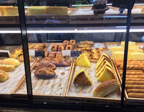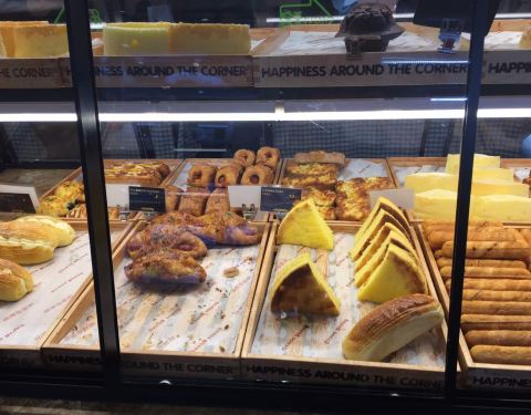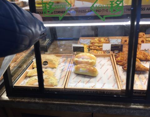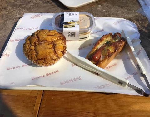 格瑞斯的蛋糕和面包都是不错,尤其推荐北海道,奶油很细腻爽口,吃起来像是奶油冰淇淋,不像其他家的奶油又甜油腻,顺便踩一脚break talk,真❤不好吃。蛋糕也是松松软软的。长得像蘑菇的一个嘿嘿的蛋糕太甜,甜的发苦。肉松面包也很不错,有夹心。木糠口感有点干涩,不顺滑。这次买的培根芝士,还没吃,看上去有点油,下次来评价。