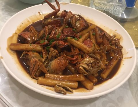 正值吃蟹时节,停车位紧缺,吃饭还得排队,等了约摸半个小时,总是轮到了,生意真好