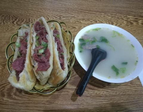 中公基地附近的小吃店,经人推荐来的,挺满意的。店面很好找,店里挺大,比较干净,还有电视看,价目表清晰,价格实惠。店家挺热情的。点了个招牌的驴肉火烧尝尝,量很足,好多肉啊,饼很脆,驴肉很咸,没吃出什...