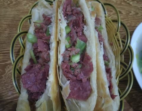 量很足,好多肉啊,饼很脆,驴肉很咸,没吃出什么特别的味道,有瘦肉有筋,有嚼劲,肉多到夹着吃总是掉出来