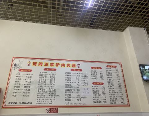 中公基地附近的小吃店,经人推荐来的,挺满意的。店面很好找,店里挺大,比较干净,还有电视看,价目表清晰,价格实惠。店家挺热情的。点了个招牌的驴肉火烧尝尝,量很足,好多肉啊,饼很脆,驴肉很咸,没吃出什么特别的味道,有瘦肉有筋,有嚼劲,肉多到夹着吃总是掉出来。