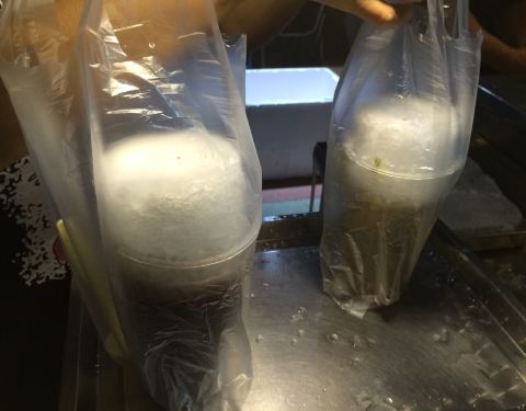 杨浦美食多又多 去年的网红刨冰今年拔草 原来每年6月到9月的营业时间 现在贴上了“全年营业” 每天供应时间:18:30-23:30 掐着点去的 未现排队人潮 就在拍照的间隙 被一个代购的插入 一下子买了15杯... 夫妻老婆店 阿叔负责盛料 刨冰;阿姨负责收钱装袋 真正的手刨刨冰 一整块大型冰块来回刨取的 见底了再换块新的 红豆、绿豆10元;水果一律15元(估计是罐头食品) 一杯绿豆+一杯黄桃 标配勺子和吸管 冰沙在上 边缘戳戳乐 本身甜度足 绿豆烧的酥烂 黄桃加了糖水 所以冰沙搅匀下沉与之混合也不会淡而寡味 虽然价格上涨了 但那一份老旧情怀请继续保留下去