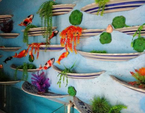 ...吃竹家庄的,但是没开门,要年初四才开,到桌桌有鱼也已满坐,看见上菜是两个人用篇担挑的,很有意思