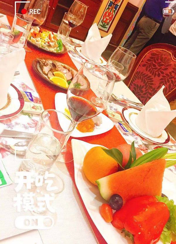 此次我们也吃到了经典正宗的红汤、俄式鱼子酱、凯撒沙拉、酸黄瓜、西兰花辅以奶油的汤(这个不知道叫什么,但是味道香甜却不腻)等等。餐前面包篮,差不多面包就可以吃到饱了……草莓酱味道不错 觉得少还可以再找服务员小姐姐要,抓了一大把给我……红肠、水果,能看到杯子厚的鱼子酱,鱼子酱稍微有点腥咸 可能不是所有伙伴都能享受得了。在服务员热情服务和俄式氛围下,我这个不喝酒的人也浅浅品尝了一小口红酒。很厚的牛排,一口下去香嫩多汁。期间还有一些歌舞表演,只顾着欣赏和享受美味了 没来得及拍。