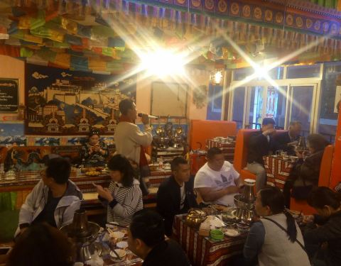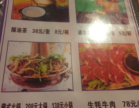 吃了那么多火锅,这家的藏式火锅很够分量,几个人吃的饱饱的,而且那个牛肉吃起来很柔软,一点也不像别人说的牦牛肉硬有味道的那种,酸奶够酸,据说是最原始的那种,必须加糖很棒的,手抓肉味道也是够味,还有那个和尚包子,原以为是和尚吃吃的