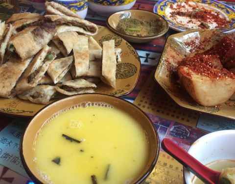 进入四川四天里吃过最好吃的就这一家藏餐了,这里有纯藏族和纯藏餐,酥油茶上面一层黄油,酥香满口。特别推荐牦牛肉烤饼和酸奶,烤饼里面夹的有牦牛肉,酱的味道特别赞;然后就是酸奶,不点绝对会后悔,不解释!...