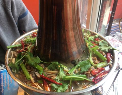 - 藏式火锅独具特色,蘸着辣椒末吃不怎么辣却又很香别有一番风味,牦牛肉特别嫩,口感很好