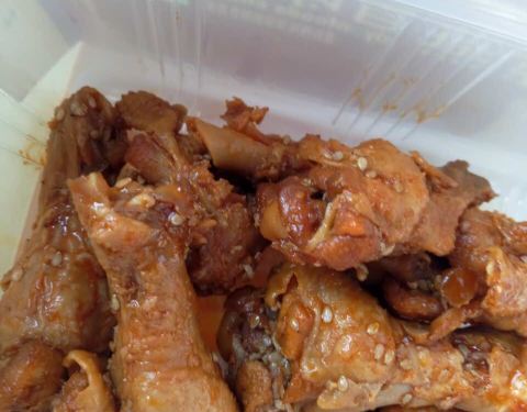 夫妻肺片很好吃,wh买了一大盆,我和阿拉璐在昏黄的路灯下,微风中,放在宣传栏上,你一口,我一口,咦,吃完了。