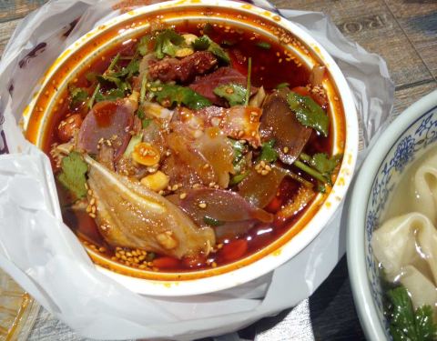 买的油烫鸭,味道不错,配的辣油味道也不辣,价格不便宜