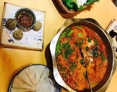 - 装饰华丽有民族特色,就餐者很多,人气超旺,酸汤鱼配料独特,豆腐丸子不错,一楼自选食材及菜品,楼上就餐