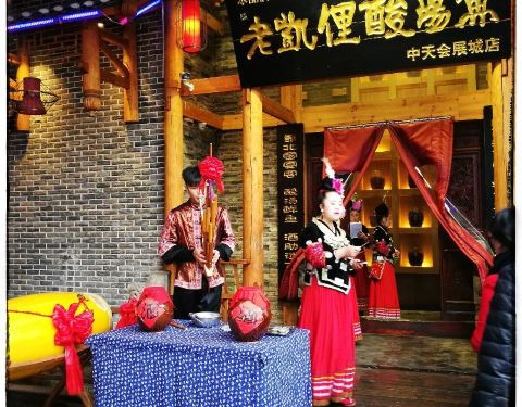 - 吃饭时间有苗族歌舞表演,民族特色浓郁。酸汤美味到灵魂深处,到贵阳一定要去的