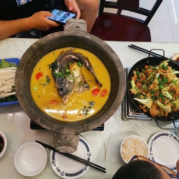 找了当地人气最高的一家吃了一餐真正意义上的特色美食,点了一个三下锅!还点了其他的四个菜,一共五个菜,他们家人气非常旺!来的时候只剩下最后一个小桌,赶紧抢上去坐下要不然后面没有座位!味道非常...美食: