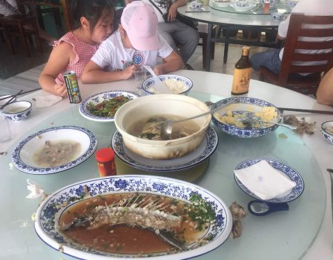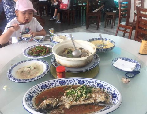 就在滨江希尔顿度假酒店旁边,人气不错,菜的量很大,服务员还根据我们的人数提醒我们菜够了。