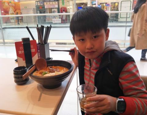 周末经常带孩子来吃的,这款食品送荔枝冰,汤比较浓,面很好吃