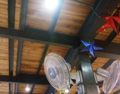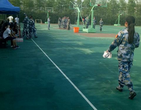 军训累了 来休息会 吃午饭 店里人不多 挺热的 受不了啊