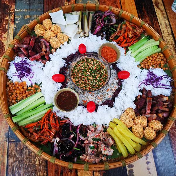 在大众点评上看到的一家菜馆,在小胡同里,不仔细看还真是不好找,可是即便是不好找,人也是超多,到了饭点不早去肯定是要排队的。被里面的手抓饭所吸引,紫米饭,白米饭,炒饭,外围有多好配菜,有五花肉、鸡爪、鸡丝、黄瓜、粉丝、炸土豆条、木耳、花生米等等,样子吧,确实很有画面感,但是味道,我觉得一般般,酱汁我不是很喜欢,价格不贵。