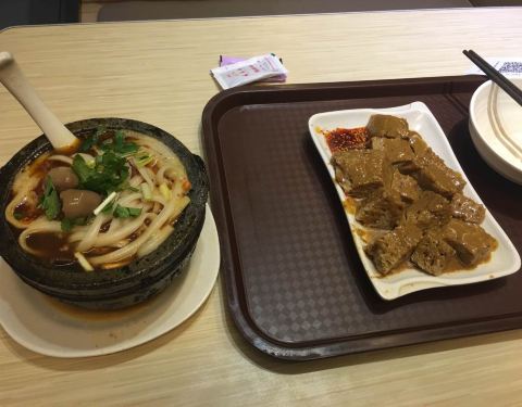 ...但还比较干净,砂锅刀削面和砂锅土豆粉的种类挺多的,果茶、面筋等小吃、饮料味道也还不错,价格偏高