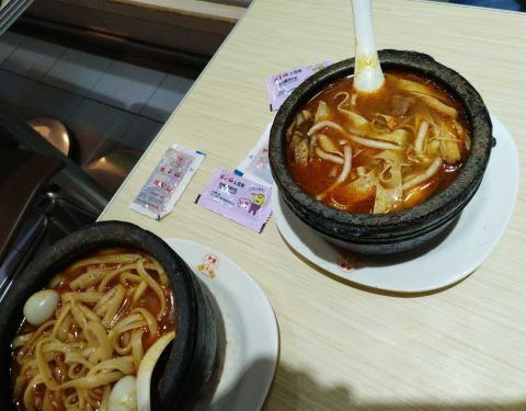 - ...但还比较干净,砂锅刀削面和砂锅土豆粉的种类挺多的,果茶、面筋等小吃、饮料味道也还不错,价格偏高
