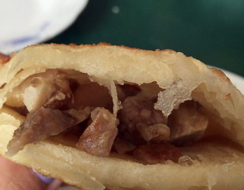 ✨家里表弟表妹们都知道我好吃,平日里会帮我留意各色美食, ✨这次回家带我去30公里外的建平吃对夹,说比本地做的好吃,一家B粑粑馆,下午1点就关门,店里生意火的很,打包的客人通常都是十几二十个甚至更多的带走, ✨对夹的标配是小馄饨,这家的对夹和馄饨都做得很好吃名不虚传,外酥里嫩的饼皮,内馅夹着熏肉,一口咬下去,香脆适口,心里只有一个念头,再给我来10个!老子都能吃掉,塞满熏肉的对夹只要1块5一个,这物价羡慕到想哭